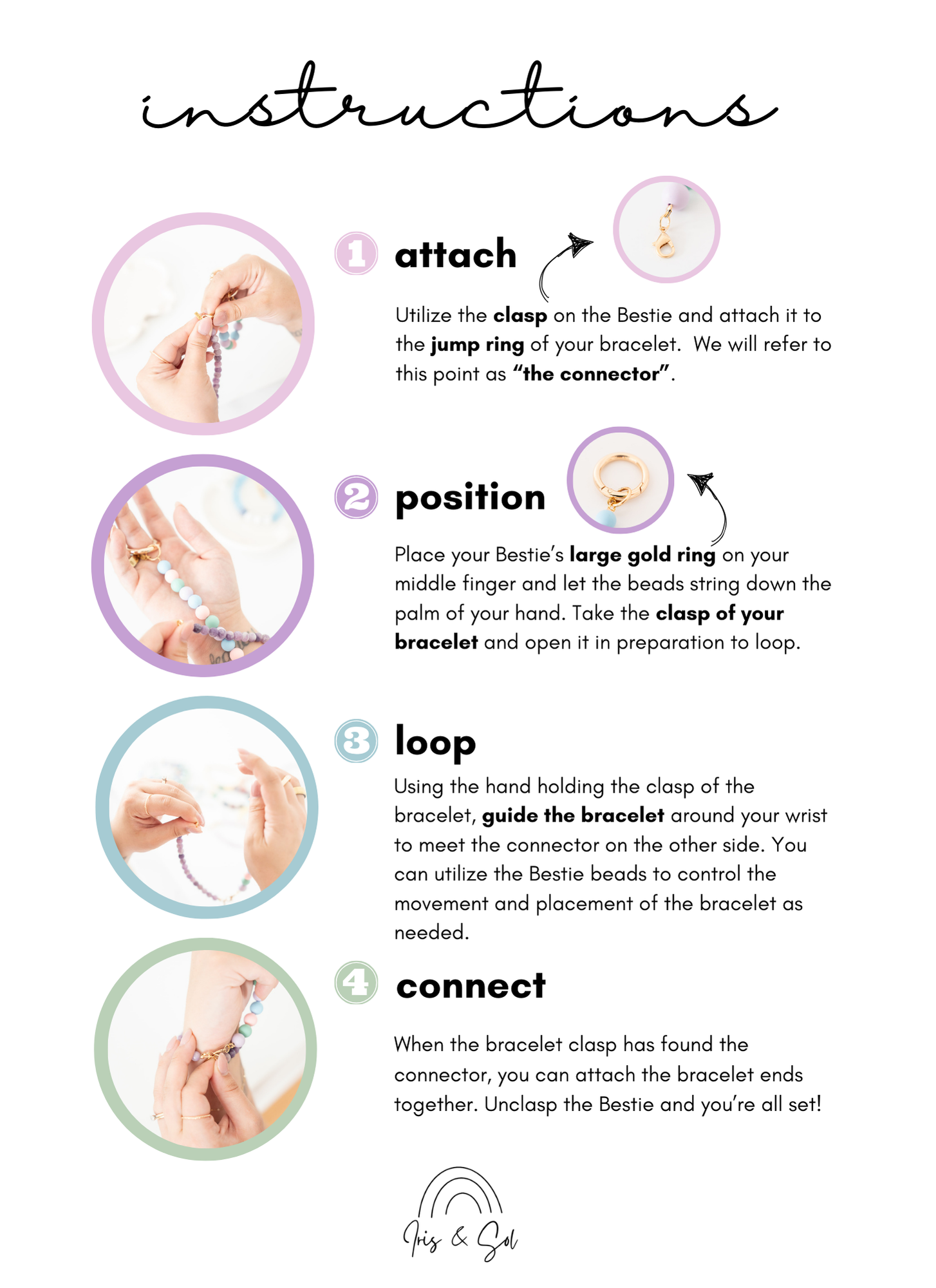 Introducing the Bracelet Bestie by Iris & Sol, your new indispensable accessory for effortlessly putting on bracelets. No more struggling with clasps or needing extra help. The Bracelet Bestie is designed for quick, fuss-free bracelet wearing, ensuring you look stylish and polished in no time.