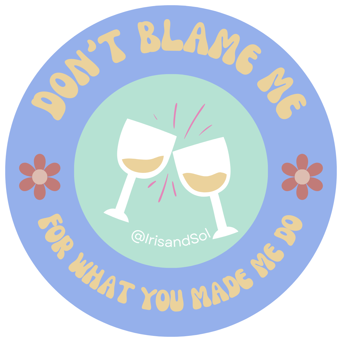 Pegatina impermeable que te recuerda que los niños pueden llevarte a beber vino y que nadie puede culparte por ello. Se llama supervivencia: búscalo.