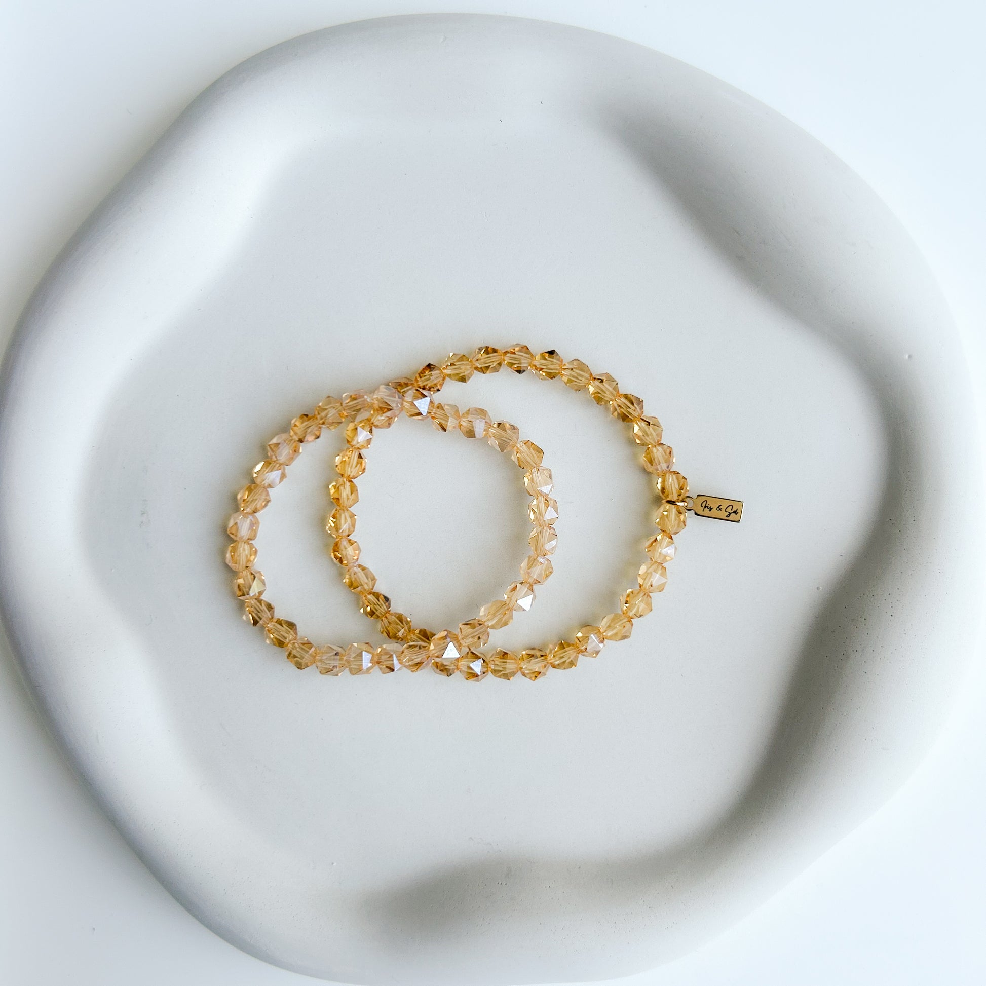 Las joyas siempre corren el riesgo de romperse. Nuestros cuerpos están en movimiento y cualquier tirón implacable puede romper repentinamente una pieza especial. La naturaleza de la cuerda elástica es que es duradera, pero hasta cierto punto. Enrolle siempre su pulsera, no la estire. Si necesita estirarlo hasta el punto de ver más de 1 pulgada de la cuerda, debe aumentar el tamaño.