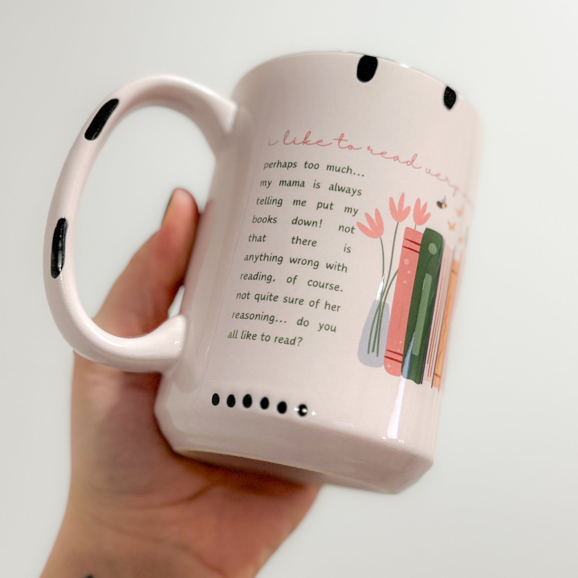 A 15oz mug artfully chipped with pastel hues. Dishwasher safe.