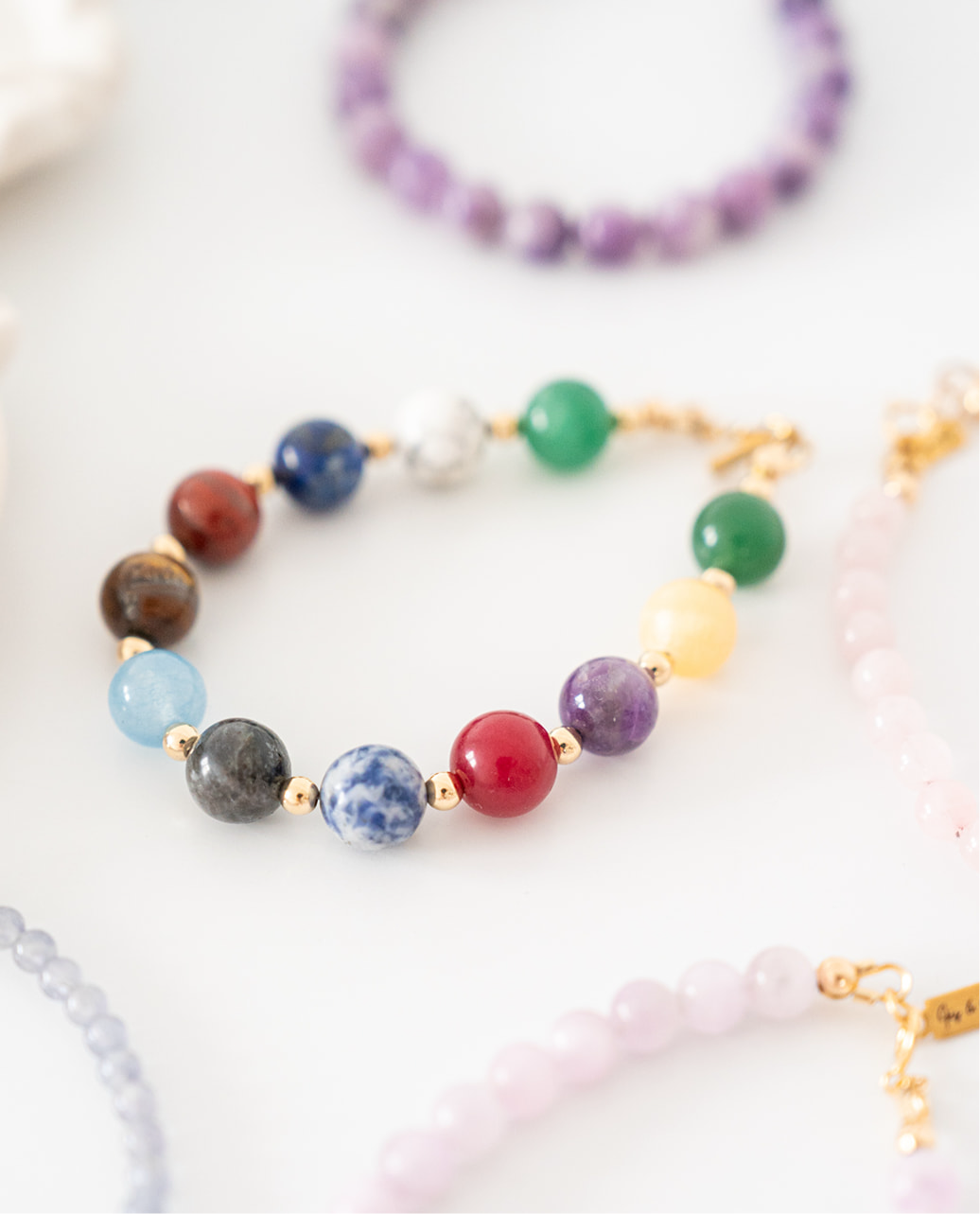 Handmade bracelet crafted with a combination of 10mm gemstones symbolizing Taylor Swift Eras. Each era is hugged by a 4mm 14k gold filled seamless bead.