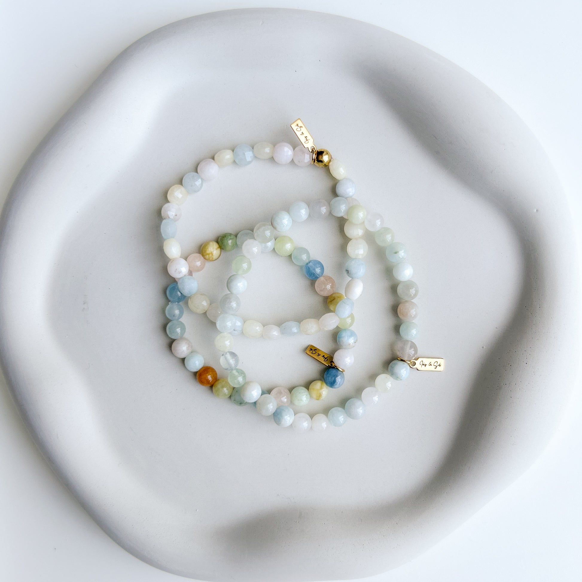 Handmade bracelet crafted with gorgeous gemstones. Assembled with stretch string. Colours and bead size may vary depending on availability.