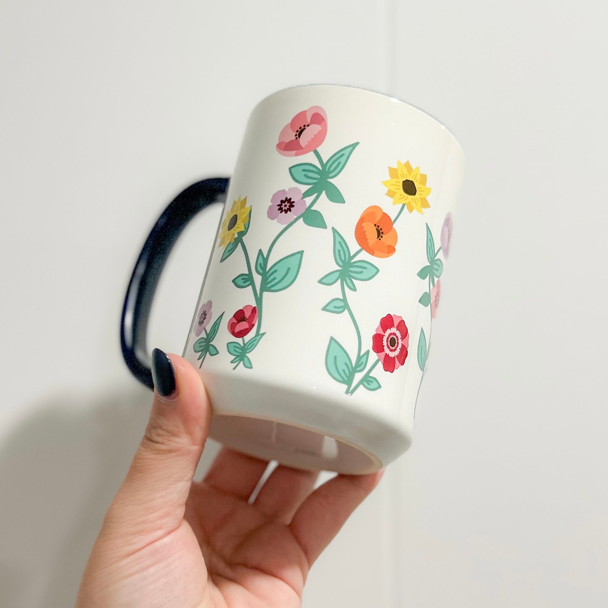 A 15oz mug artfully chipped with pastel hues. Dishwasher safe.