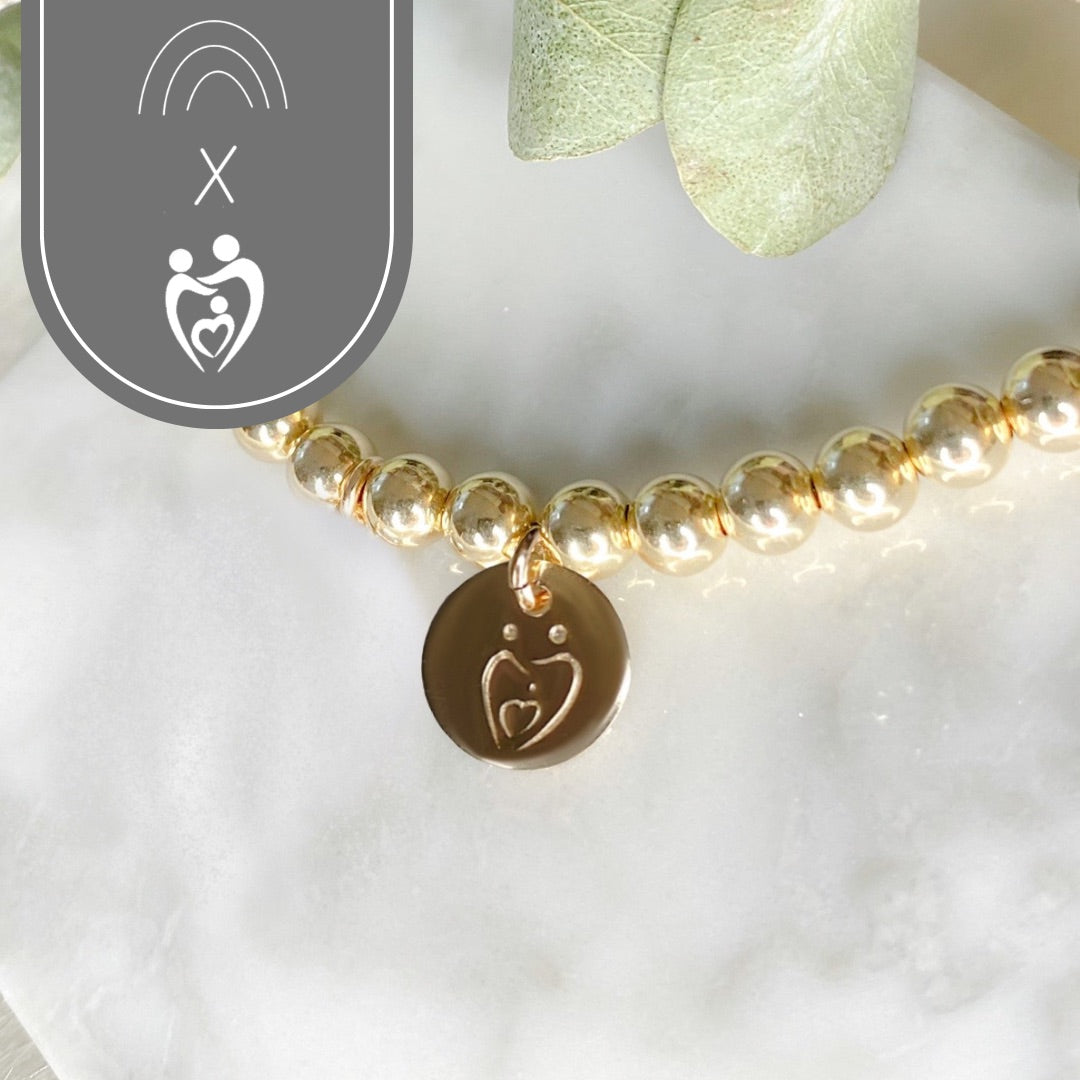 Esta pulsera presenta una sola hebra de cuentas de 5 mm de plata esterlina .925 o de oro de 14k sin costuras, de origen canadiense, a lo largo de un disco estampado con el contorno del logotipo de CPMHC. Delicadamente elaborado con un elástico seguro en 3 tamaños.