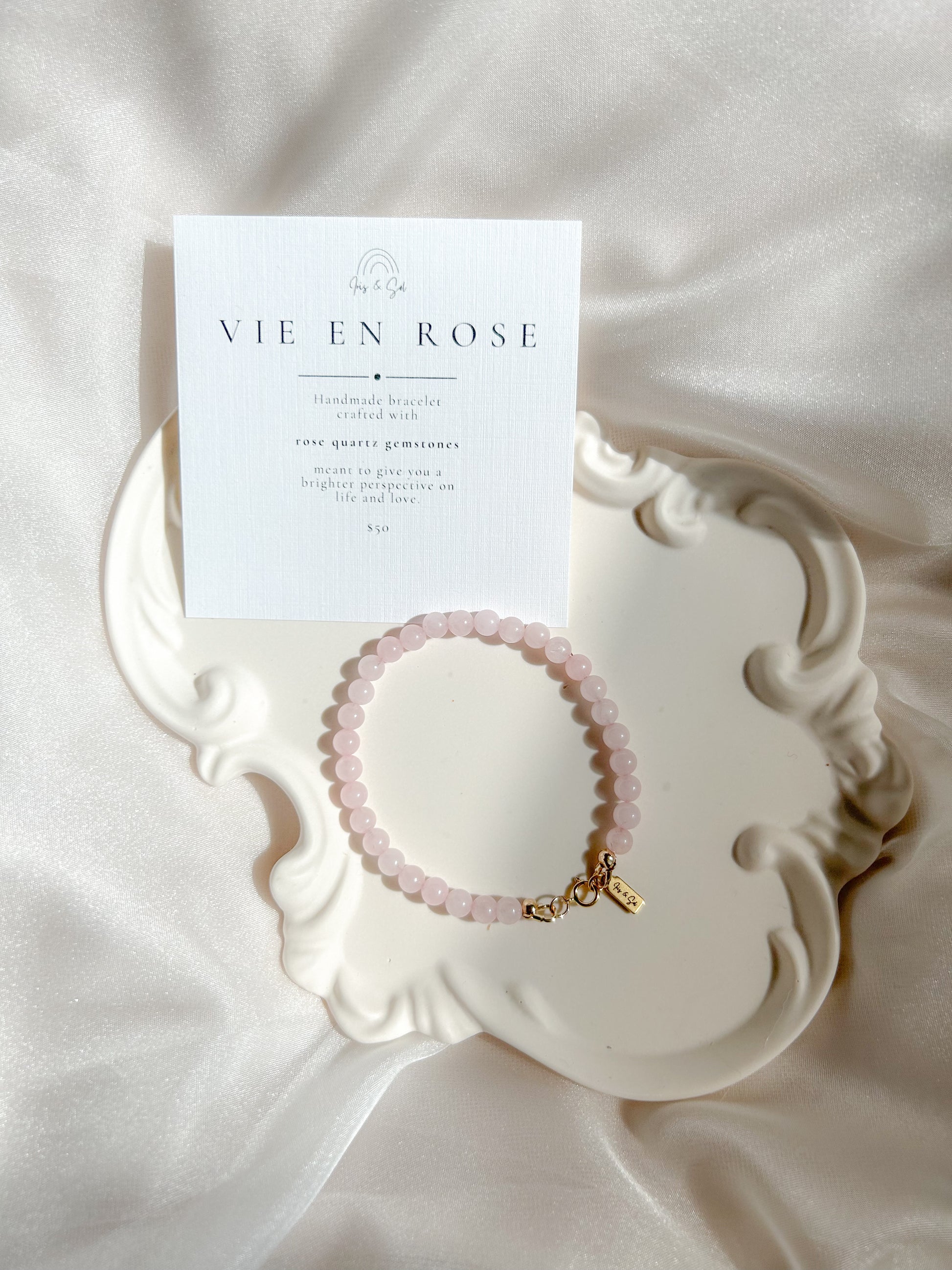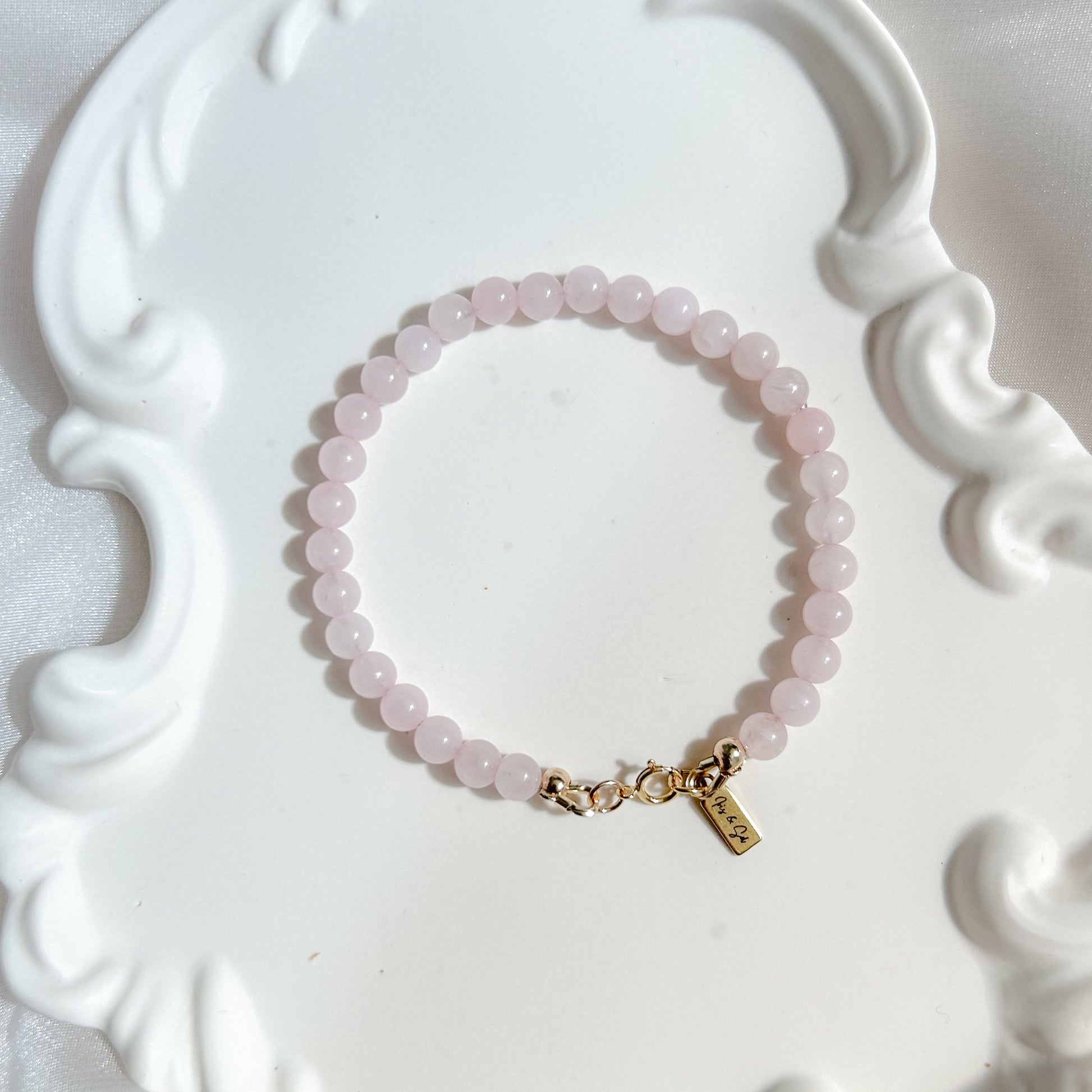 Handmade bracelet crafted with 5mm rose quartz gemstones, meant to give you a brighter perspective on life and love.