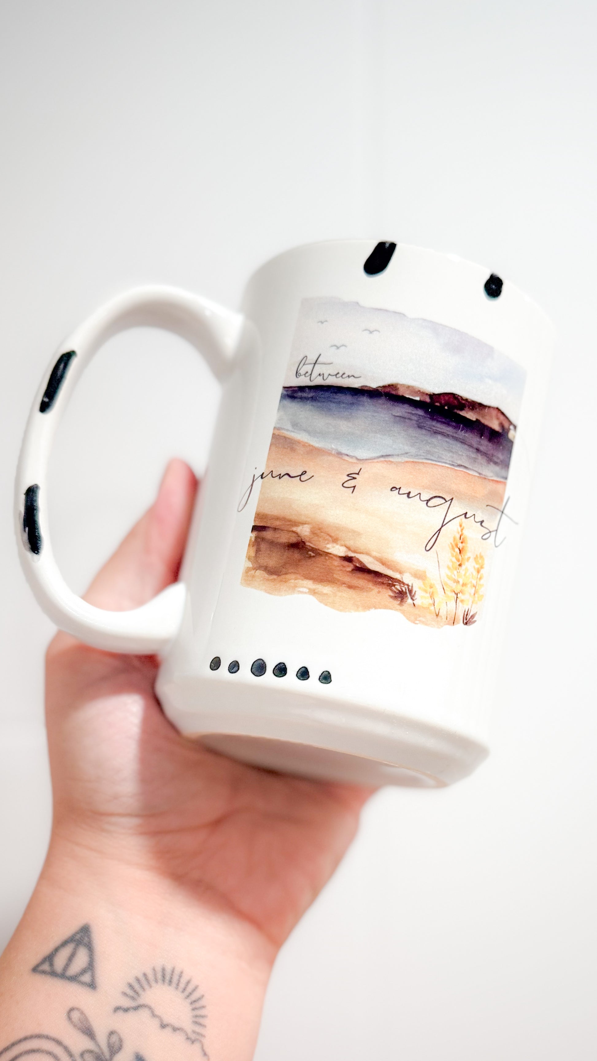 A 15oz mug artfully chipped with pastel hues. Dishwasher safe.
